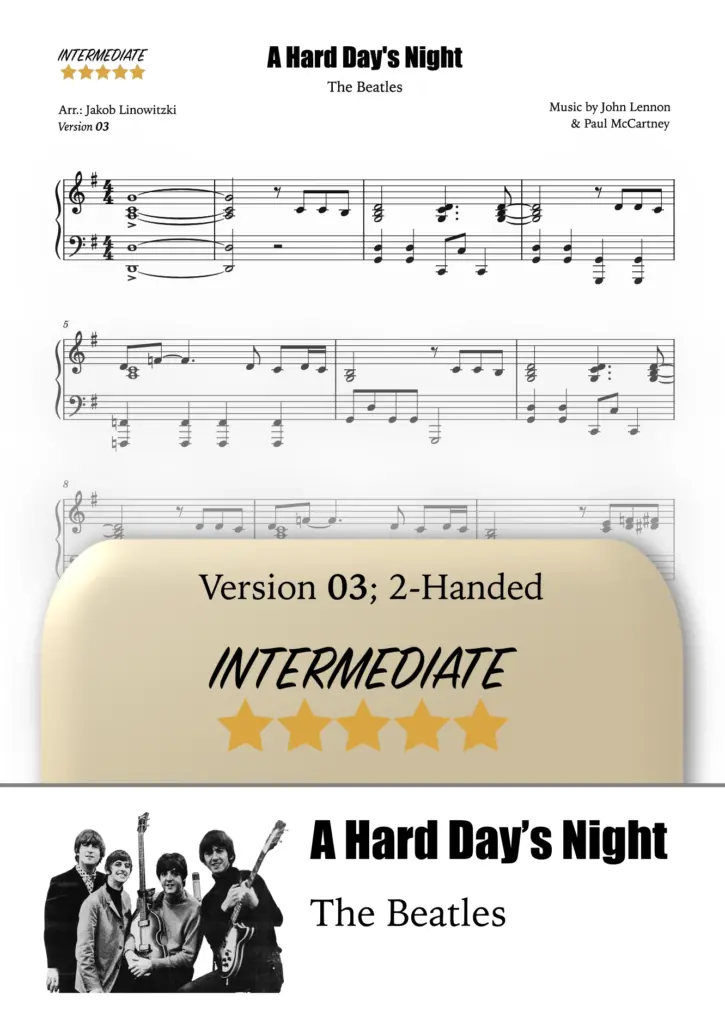 The song A Hard Day’s Night was written by John Lennon and Paul McCartney and released by the Beatles in 1964 as a single and as the title track of their film and accompanying album A Hard Day’s Night. Sung mainly by John Lennon, the song reached No. 1 in both the UK and the US. It is famous for its distinctive opening guitar chord, played by George Harrison on a Rickenbacker 12-string guitar. The lyrics reflect the relief of returning home after a long day of work, matching the band’s hectic touring schedule at the time. The song became one of the defining tracks of the early “Beatlemania” period.