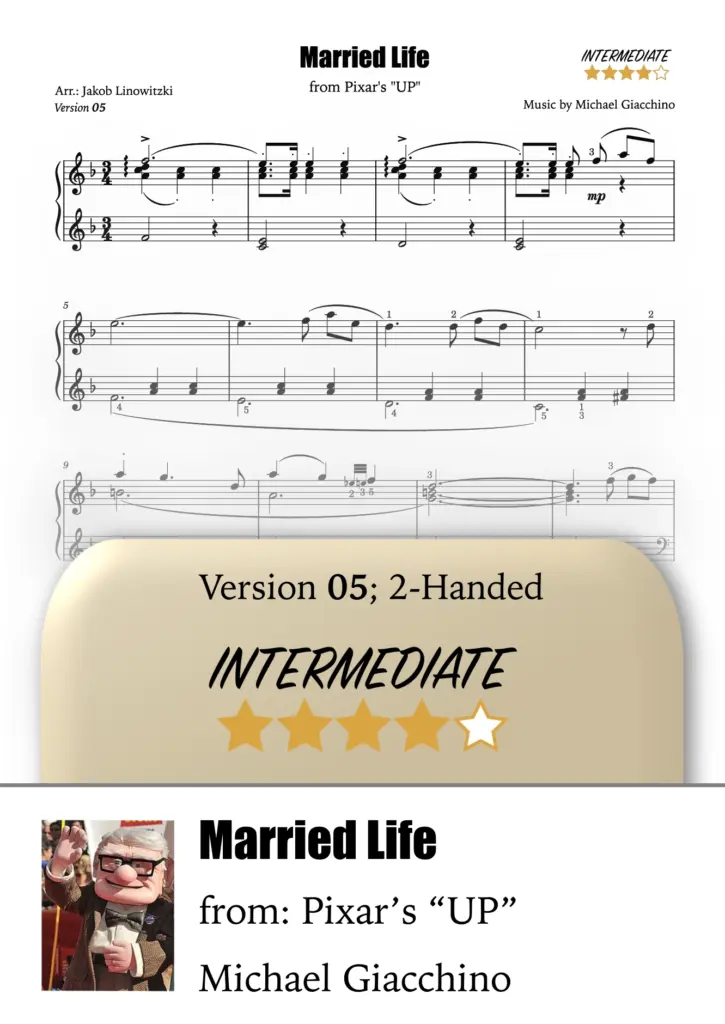 The piece Married Life is from the soundtrack of the Pixar film Up (2009) and was composed by Michael Giacchino. In the film, the melody accompanies the moving life montage of Carl and Ellie, blending nostalgic lightness with a touch of melancholy.